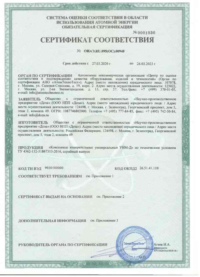 Сертификат соответствия на комплексы измерительные
